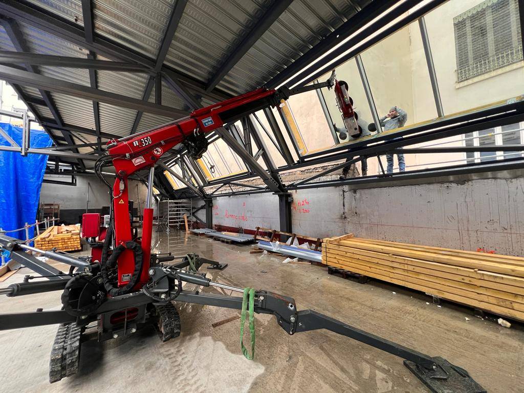 Notre petite grue araignée à chenille KEGIOM est ultra polyvalente, super compacte et très légère. Elle est équipée d'un JIB manuel.