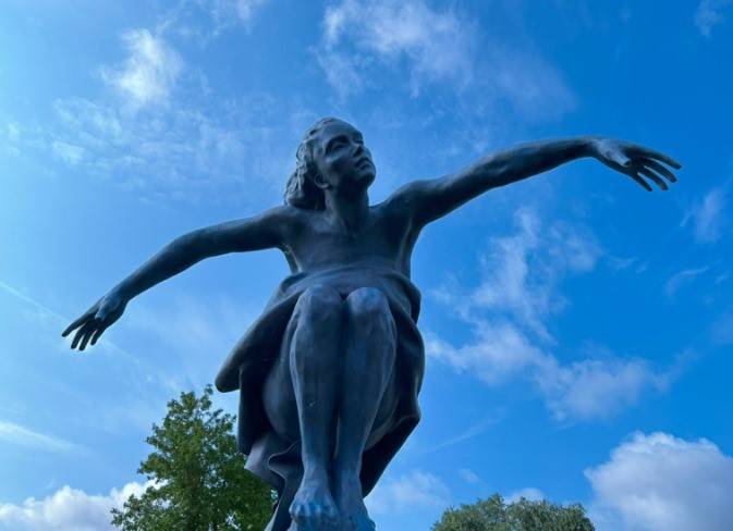 L'œuvre d'art de l'artiste Bénédicte DUBART est appelée "Blue Bird". Elle pèse 500kg, fait 3m de haut et 2m d'envergure et vient agrémentée le parc d'une société, rappelant ainsi ses valeurs d'ouverture, croissance et protection.